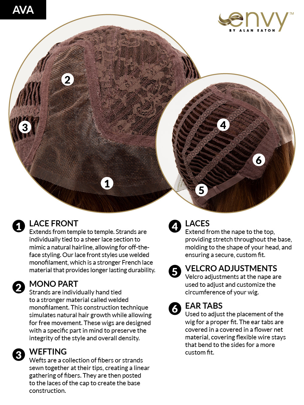 Looking for a longer "do"? Ava's lines are sleek with a touch of allure. You'll love the styling options of these lavish tresses curl them, straighten them, or add a few waves, our exclusive Envyhair blend allows for heat styling up to 350° F. Even better, the lightweight capless construction keeps your scalp cool and cozy for year-round comfort.